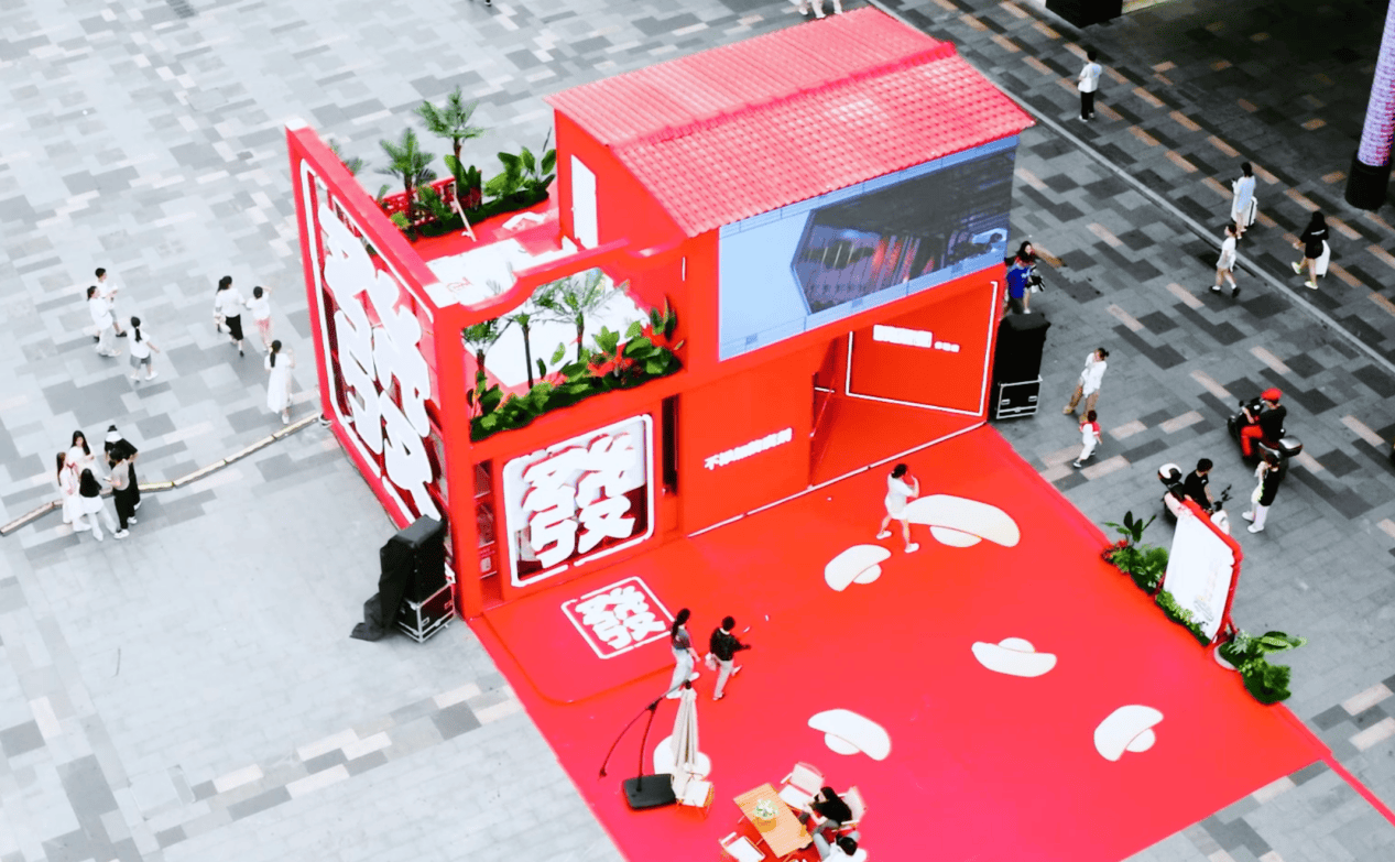快闪店内,张新发财神形象颇为引人注目,这个融合了传统财神元素与品牌特色的创意设计,喜庆活泼,不仅在店内为大众祈福,还时不时出现在快闪店二层的3d裸眼视频大屏幕上,成为现场一大亮点,搭配快闪店外围墙面上偌大的“发”字,代表了张新发对所有消费者献上的今夏最美好的祝愿。