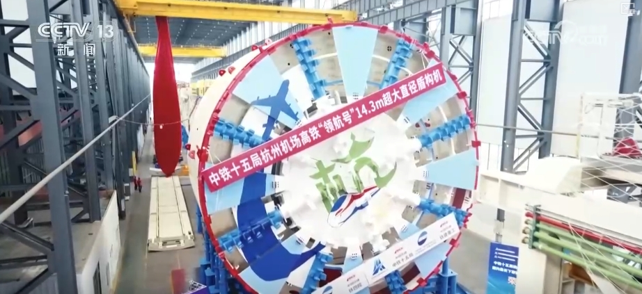 7月27日,超大直径盾构机“领航号”在湖南长沙下线,将应用于杭州萧山机场东高铁隧道建设。这台刀盘涂装“杭”字图案的“领航号”盾构机全长约126米,总重量约3100吨,刀盘开挖直径14.3米,将应用于杭州萧山机场东高铁隧道建设。